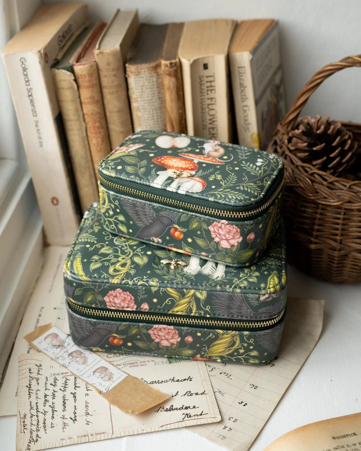 Expertly crafted using our fairytale print, Into The Woods, that guest designer Catherine Rowe designed especially for us. This jewellery box has multiple pockets and compartments to keep your most treasured items safe and secure. This piece is the perfect accompaniment for your jet-setting adventures or it’s equally as happy to sit pretty atop your dresser.