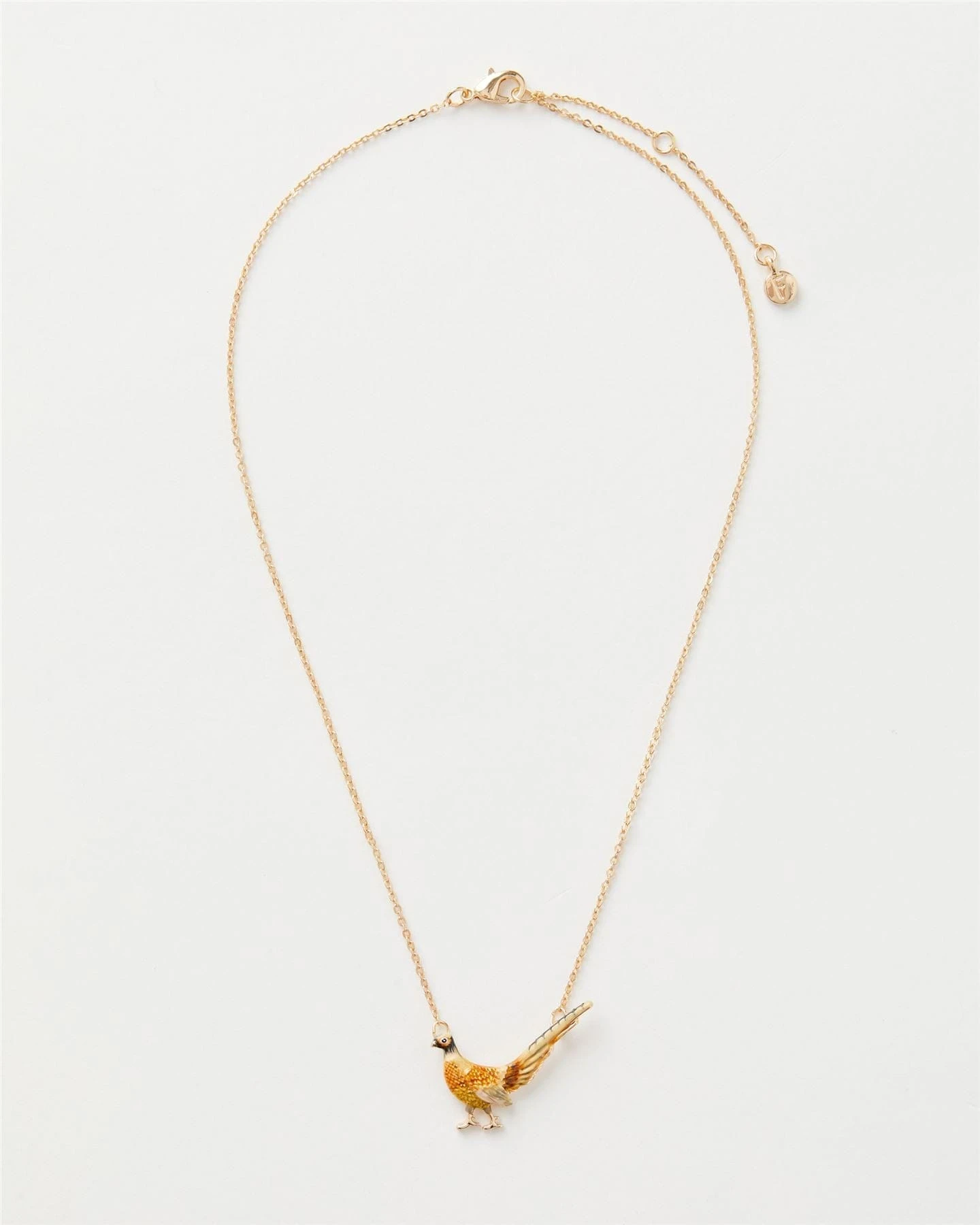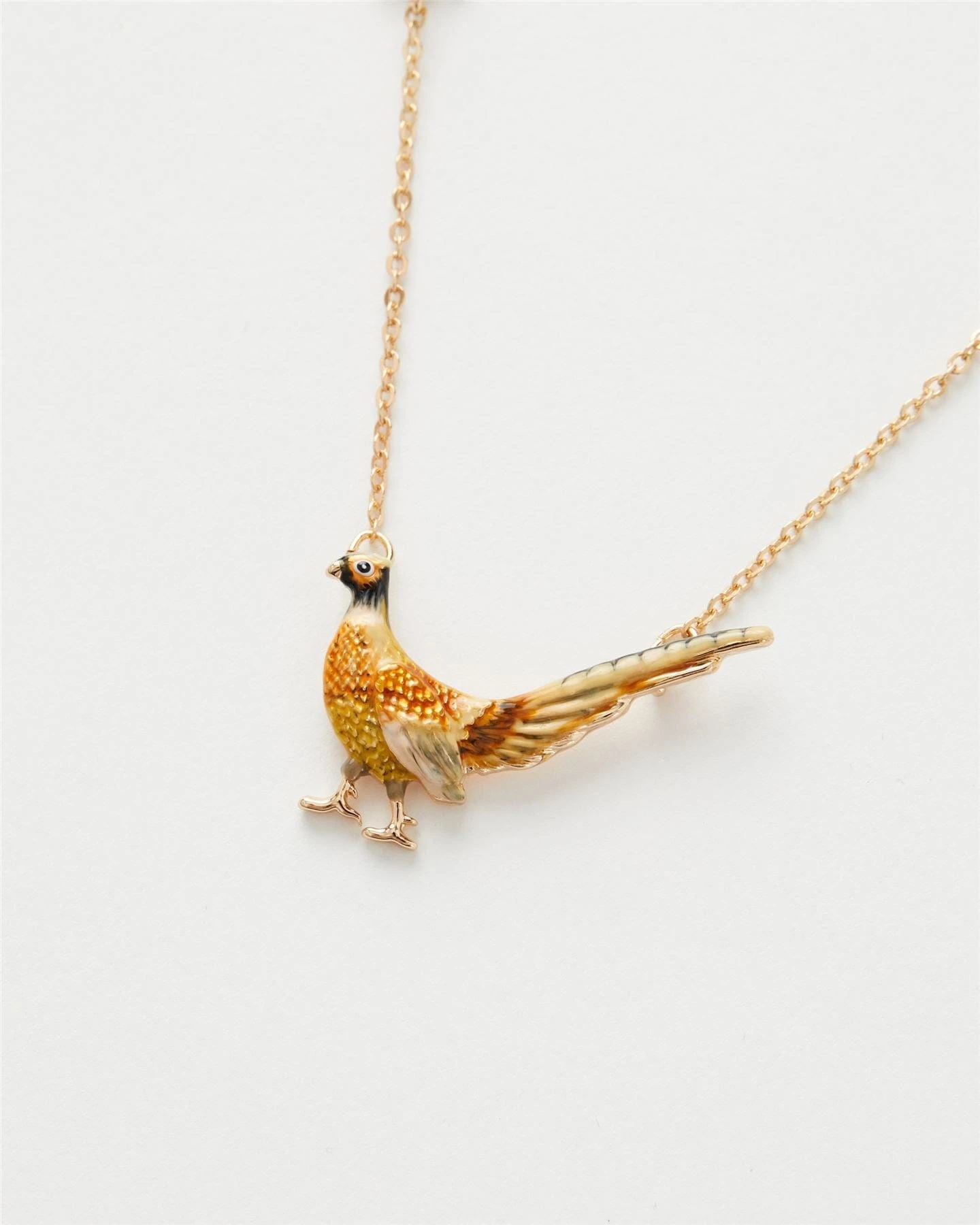 The pheasant charm hangs delicately from a simple chain, offering a touch of nature-inspired elegance to your everyday look.