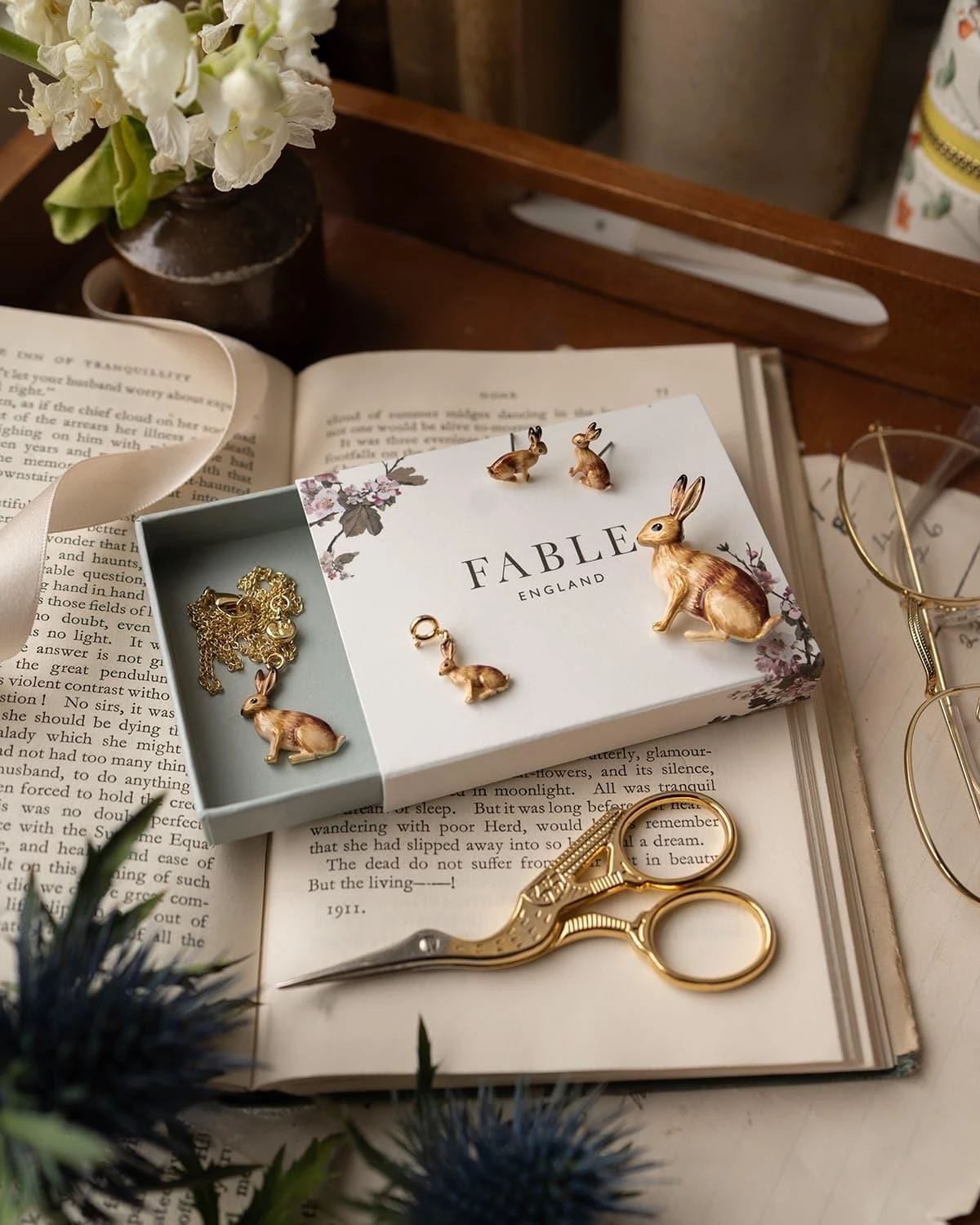 Add a touch of nature’s beauty to your ensemble with our sprightly Rabbit Stud Earrings. Crafted to perfection, these earrings evoke the whimsical charm of woodland creatures emerging from the forest’s edge. From their sharply pricked ears to their soft bobtails, these adorable bunnies boast vintage-like charm that will endure for years to come.