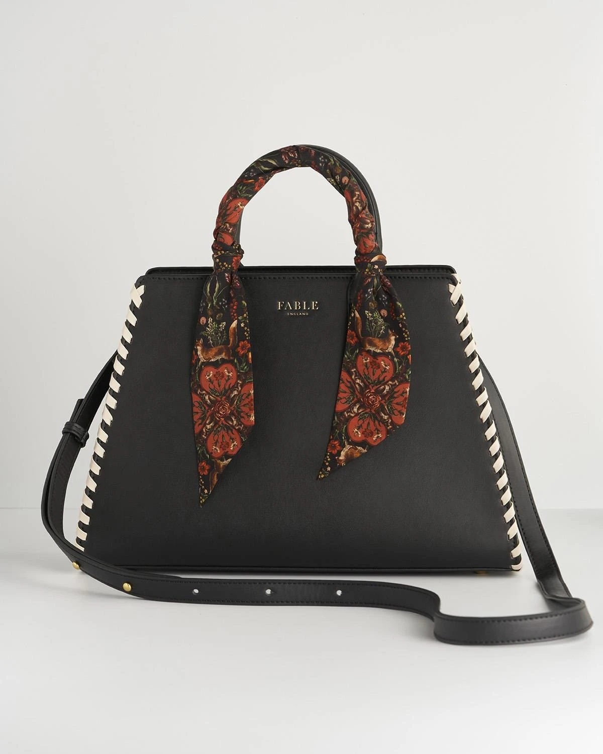 Seasons change, but the Gala Apple Tote is forever – the ultimate luxury accessory, designed to last season after season. Our bohemian Folksy Fox print features in the form of a twilly scarf wrapped around the handle. Carefully crafted from apple leather, a by-product of apple products, sustainably sourced and created for our new apple collection. The Gala tote is trimmed with contrast whipstitch and finished with vintage gold hardware. The detachable shoulder strap means it can be carried as a tote or worn as a cross-body bag, perfect for toting your daily essentials, half-read novels, and all the rest.
