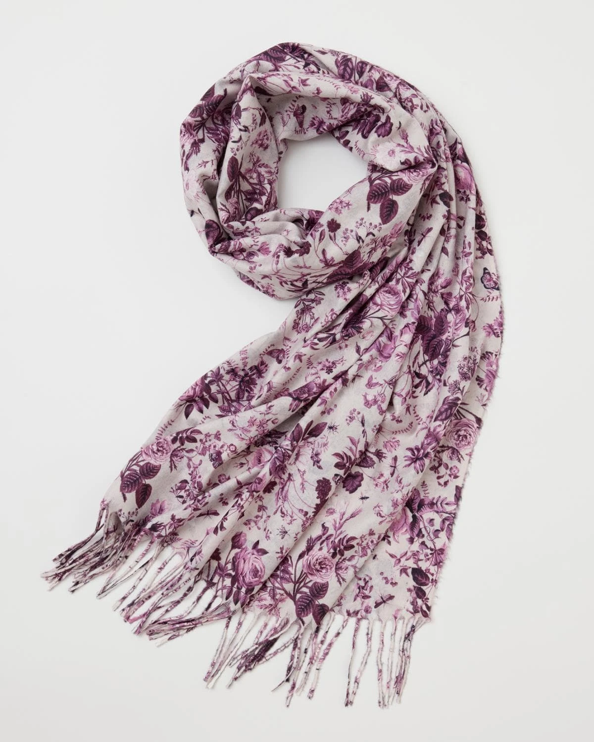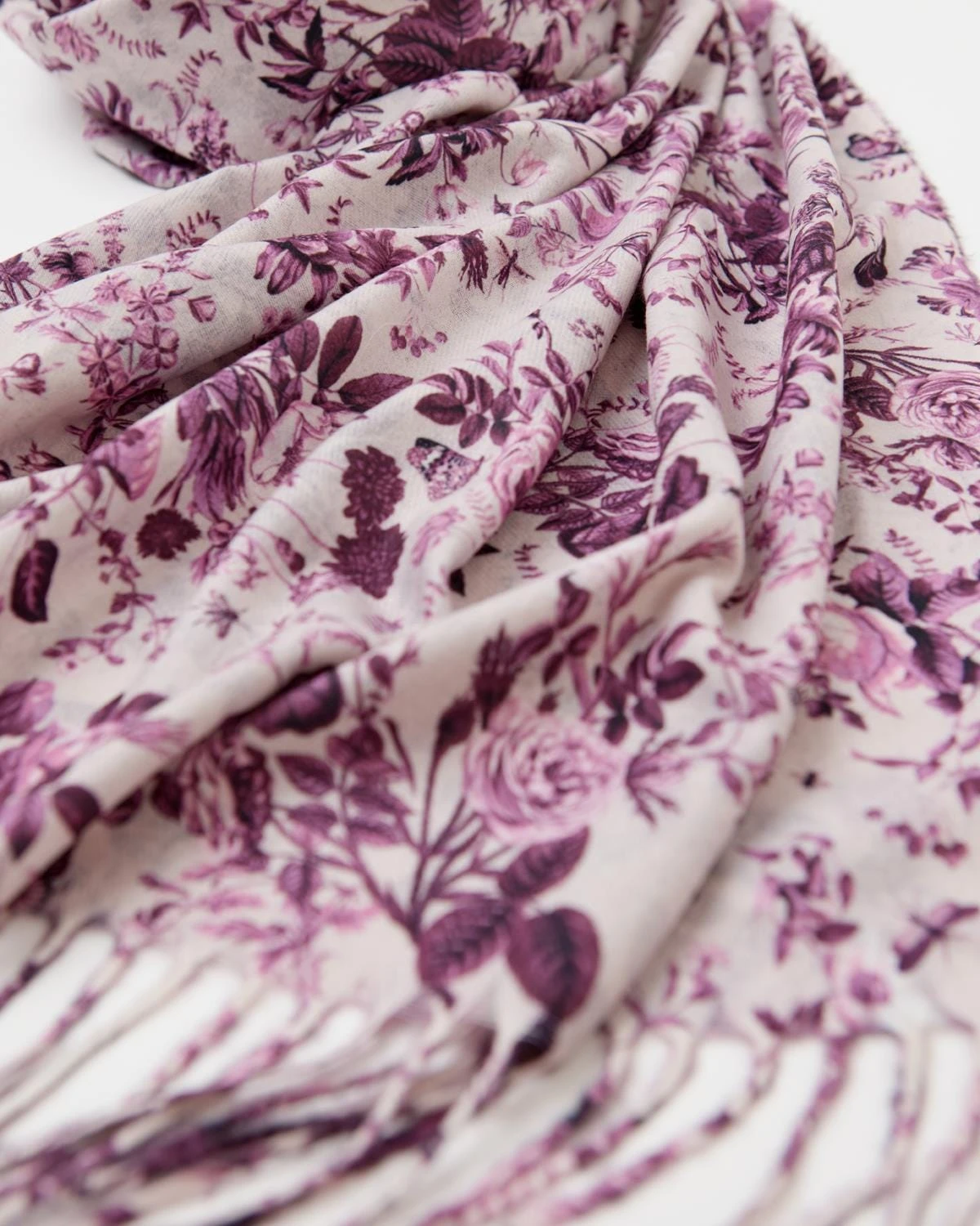 Wrap yourself in the poetic beauty of nature with our Rambling Rose print scarf. This enchanting print pays homage to the timeless allure of the English countryside. Delicate rosebuds entwine with lush foliage, creating a picturesque scene. The rich tones of burgundy add a touch of sophistication, while the soft blush of rose brings a sense of ethereal charm. The burgandy tonal pallete works perfectly with both light and dark pieces from your winter wardrobe for a classically elegant touch.