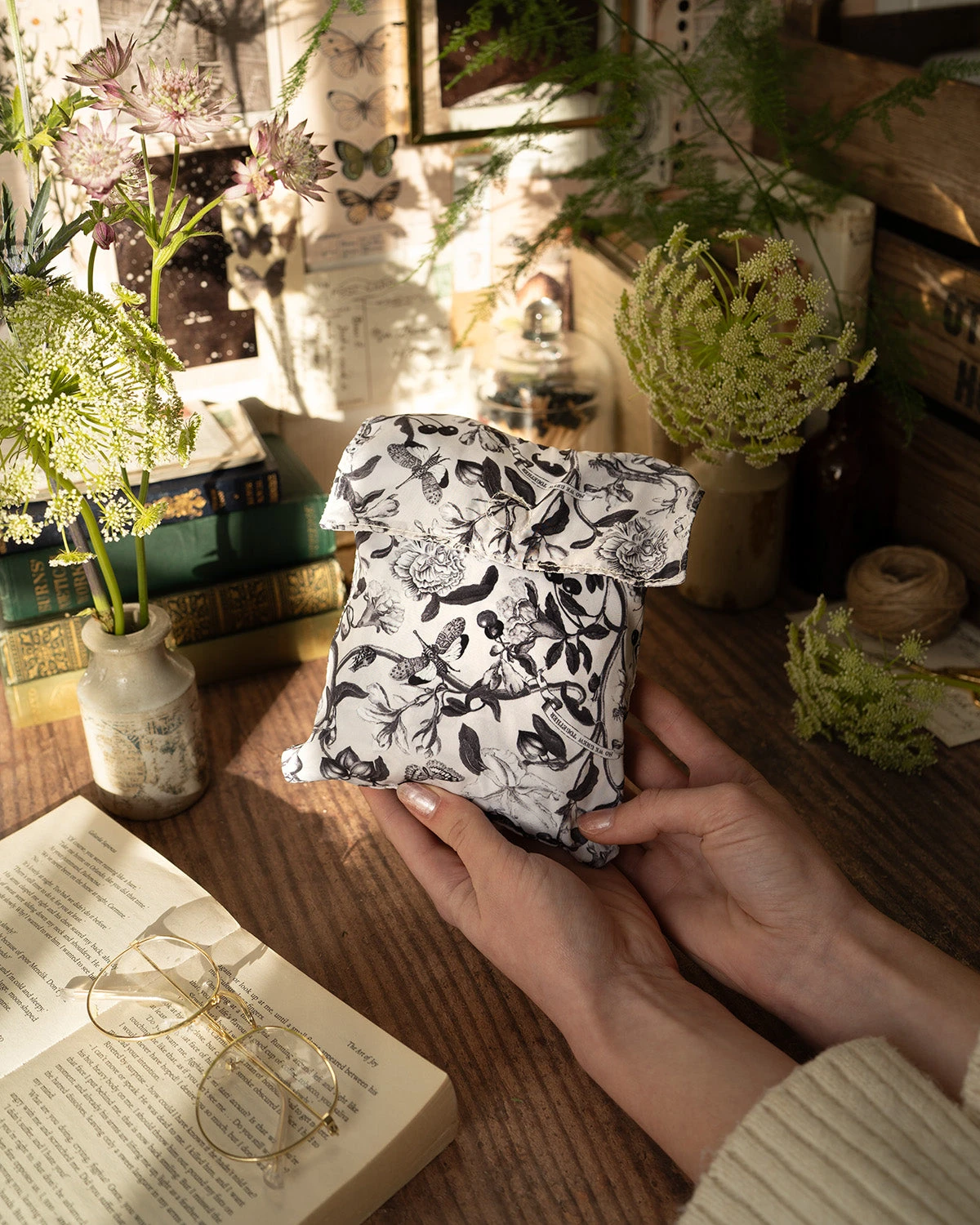 Embrace the charm of story-telling and the Elizabethan era with our folding nylon tote bag featuring the stylish Monochrome print from the Tree of Life collection. Whether foraging in the woods or carrying everyday essentials, this versatile bag is the ideal size. The chic black strap adds a stylish touch to its Shakespearean-inspired design.